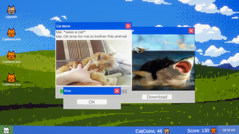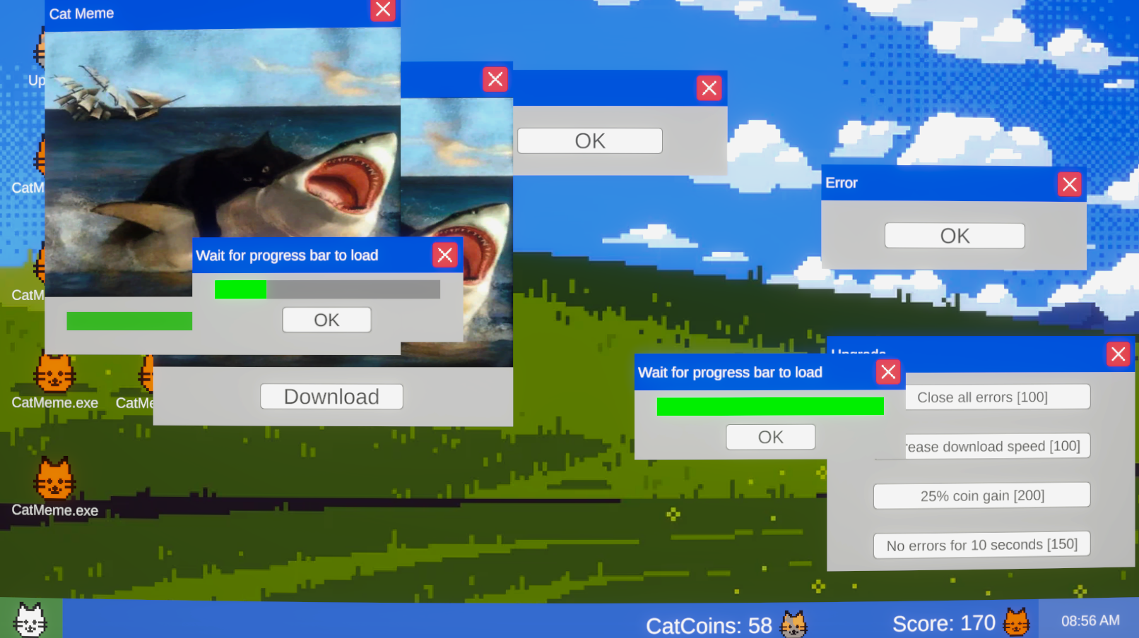 Download cat memes, close error pop-ups, and spend CatCoins on upgrades before the system crashes.